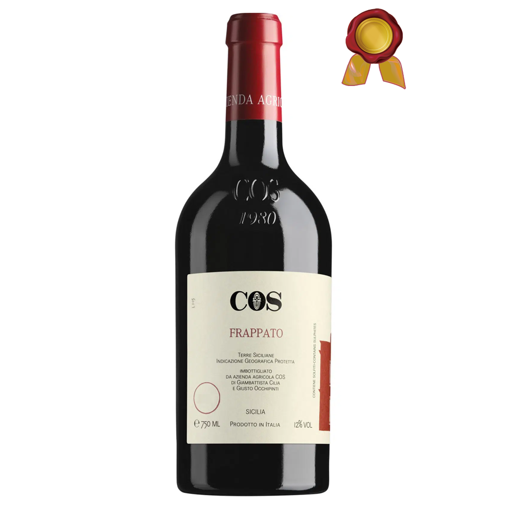 Vitigno che si identifica completamente con il territorio di Vittoria come il frappato. Quello che ne deriva è un vino rosso di grande fascino, sempre sorretto da una buona acidità, dallo spiccato carattere mediterraneo. Il Frappato IGP di COS matura in vasche di cemento vetrificato e, a distanza di un anno, quello che ritroviamo nel bicchiere è un vino di grande fragranza, vera e propria bandiera non solo della cantina ma di tutto il territorio della Val di Noto.