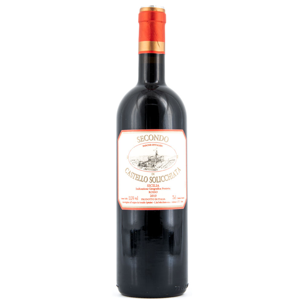 Il “Secondo di Castello Solicchiata” viene prodotto dal Barone Spitaleri, nella contrada di Solicchiata in provincia di Catania, l’ispirazione sulla produzione di questo vino arriva dall’antico uvaggio dei vini originari di Bordeaux e utilizzando varieta’ presenti nella tenuta da oltre 150 anni. Le uve usate sono Cabernet Franc, Cabernet Sauvignon e Merlot. Le vigne sono coltivate su terrazzamenti posti a un’altitudine di circa 800 metri sul livello del mare, su terreni di matrice lavica ricchi di sabbie e lapilli. È in queste particolari condizioni che le uve, maturano con profili eleganti, grazie a esposizioni soleggiate, al clima fresco e alle notevoli escursioni termiche dell’altitudine. Le tre varietà sono vendemmiate e vinificate separatamente, seguendo le rispettive epoche di maturazione.. La vendemmia viene eseguita a mano e dopo un’attenta selezionate dei grappoli , la vinificazione avviene in tine troncoconiche di legno di rovere, seguita da due anni di maturazione in botti di rovere francese (Allier e Tronçais) e 3 anni in bottiglia.