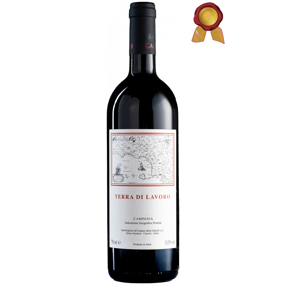 Il vino rosso Terra di Lavoro, è un’istituzione enologica della Campania, accolta in ogni annata con grande entusiasmo e successo. Prodotto dalla cantina Galardi, con il grande supporto dell’enologo di grande valore Riccardo Cotarella, particolarmente sensibile al recupero e alla valorizzazione dei vini del Meridione, portarono alla nascita, nel 1994, di un prodotto che suscitò in tutti una incredibile emozione. Con un’attenta miscela di Aglianico e Piedirosso, un tempo chiamato “Pere ‘e Palummo”, ottenuta da vigne esposte a Sud-Ovest fra i quattrocento e i cinquecento metri sull’incantevole golfo di Gaeta, viene realizzato il Terra di Lavoro. Le uve di Aglianico e Piedirosso vengono raccolte in fase di piena maturazione e in alcune annate, vinificate insieme in uvaggio. La fermentazione malolattica viene svolta lentamente in nuove barrique di rovere francese, dove il liquido rimane a maturare sulle fecce fini per almeno 12 mesi prima dell’imbottigliamento.