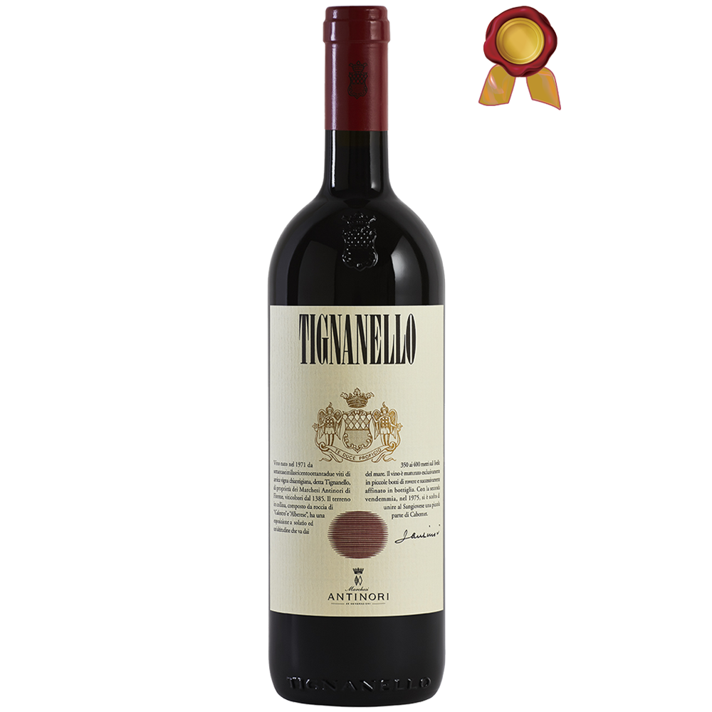 Tignanello é una pietra miliare dell’enologia, prodotto esclusivamente dall’omonimo vigneto che si trova presso Tenuta Tignanello su un terreno di 57 ettari esposto a sud-ovest, di origine calcarea con elementi tufacei, ad un’altezza tra i 350 e i 400 metri s.l.m.. Il vino, prodotto prevalentemente con uve di Sangiovese 80% ed una piccola parte di Cabernet Sauvignon 15% e Cabernet Franc 5%.