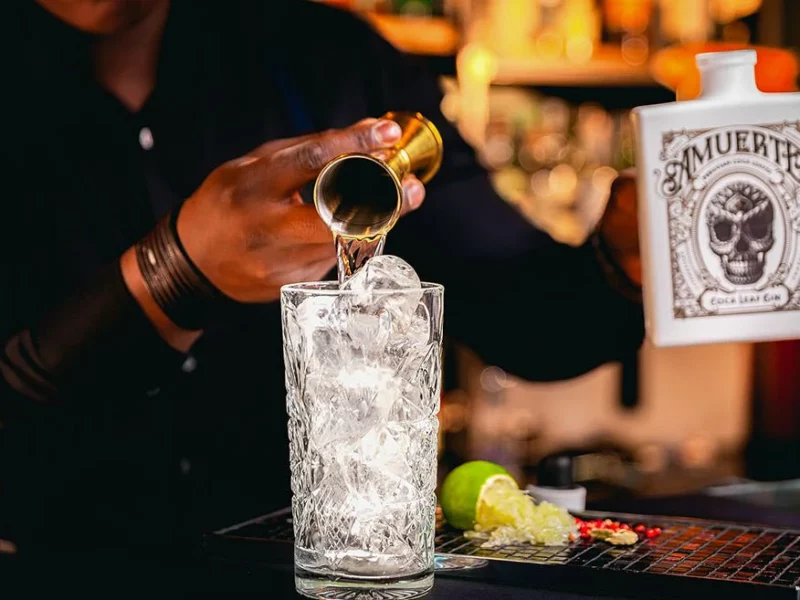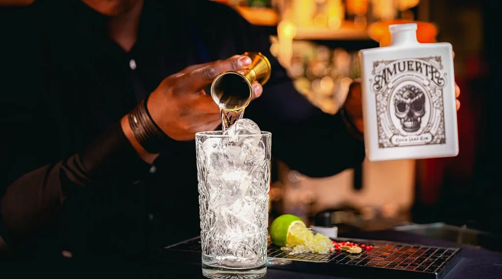 Ecco perché abbiamo creato Amuerte. Come illustre promemoria del fatto che la morte non è mai lontana, e per questo motivo, la vita dovrebbe essere celebrata in ogni istante. Mia moglie Eveline ed io, abbiamo vissuto un’avventura lunga un anno. Abbiamo viaggiato per il mondo, alla ricerca degli ingredienti definitivi in grado di accattivare i sensi dei veri amanti del gin. Questo viaggio ci ha portato nelle profondità della vasta foresta pluviale della Colombia. Lì, abbiamo osservato molti indigeni masticare foglie di coca e, proprio durante una cerimonia con la tribù dei Wiwa, ci venne offerta questa antica foglia medicinale che gode di grande rispetto. Ci rendemmo immediatamente conto che questa foglia amarognola, ma stranamente persuasiva, era l’ingrediente giusto che stavamo cercando. Non appena fatto ritorno alle luci della civiltà, chiamai mio cugino Jeffrey in Belgio: “prepara la distilleria, sta per arrivare un pó di coca“.